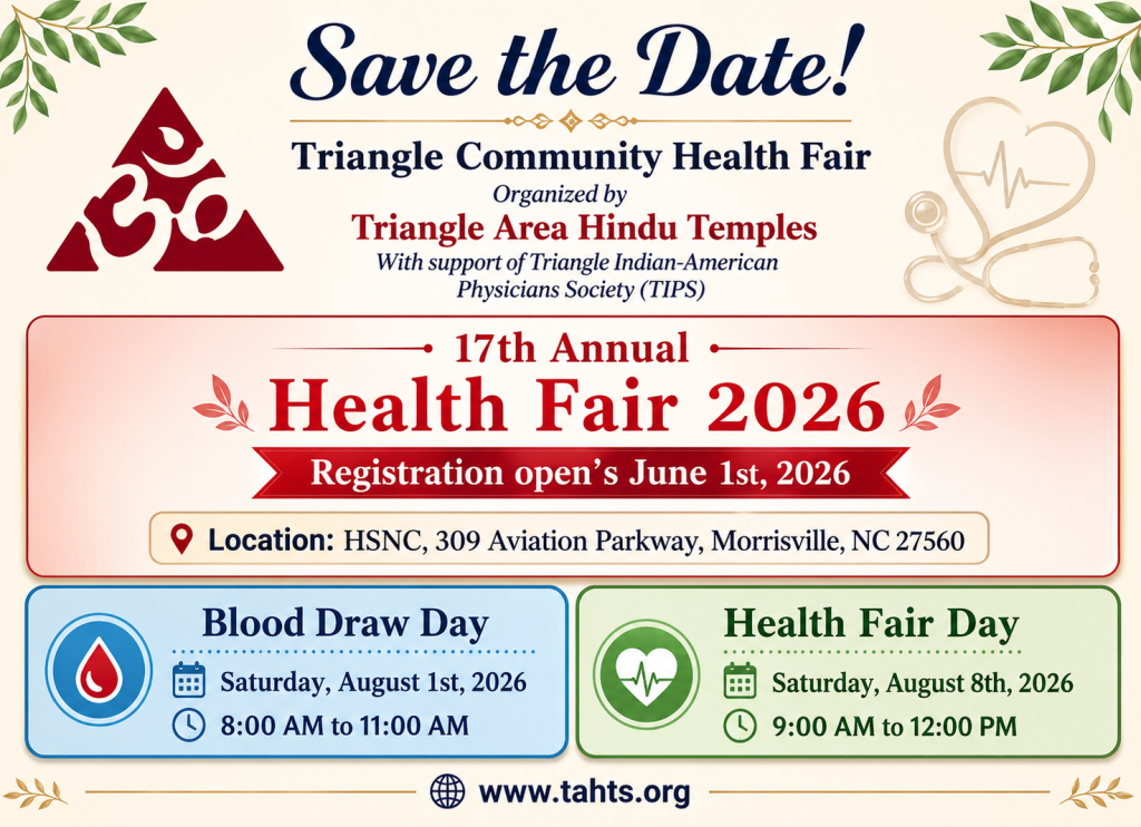 Triangle Area Hindu Temples (TAHT) have organized several activities in the past such as, Blood Donation Drives, Kite Flying festivals, Health Fairs and ids Summit. We are proud to continue our services to the local community which was well received and accepted by one and all.